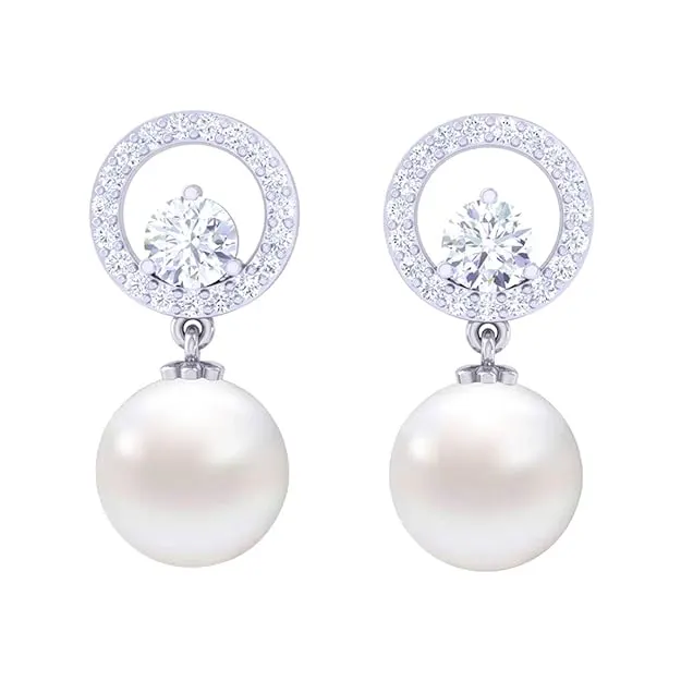 Clara 92.5 Sterling Silver Swiss Zirconia Pearl Earrings | Gift for Women and Girls