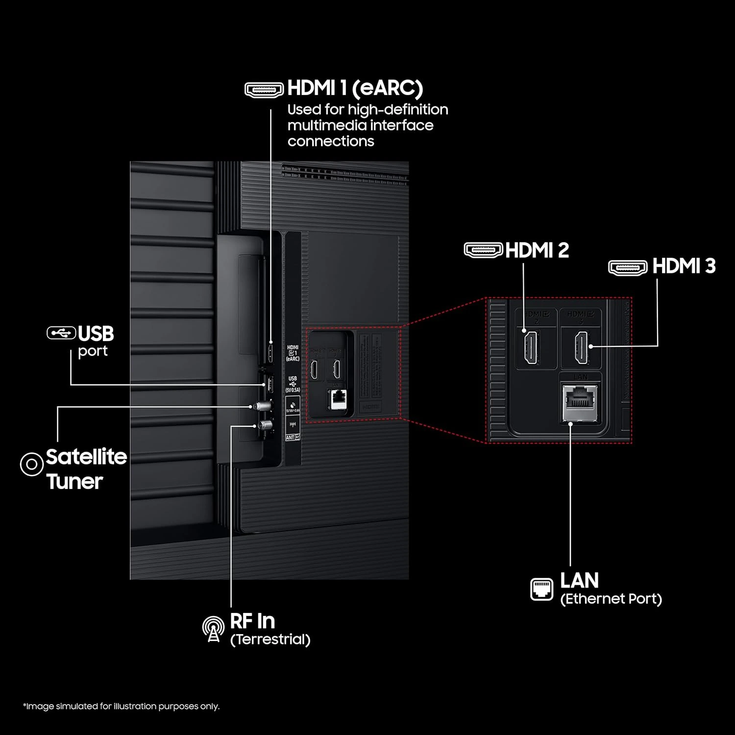 • Connectivity: Enjoy seamless integration with 3 HDMI Ports for connecting your Set-Top Box/DTH, Soundbar, Home Theater, Gaming Console, and more. Plus, stay flexible with 1 USB-A Port for easy access to Hard Drives and other USB-compatible devices. Stay connected with Wi-Fi 5, Bluetooth 5.2, and HDMI eARC, along with an Ethernet LAN Port for stable wired internet. Additional features include Anynet+ (HDMI-CEC) for unified control and RF In for Terrestrial/Cable input.